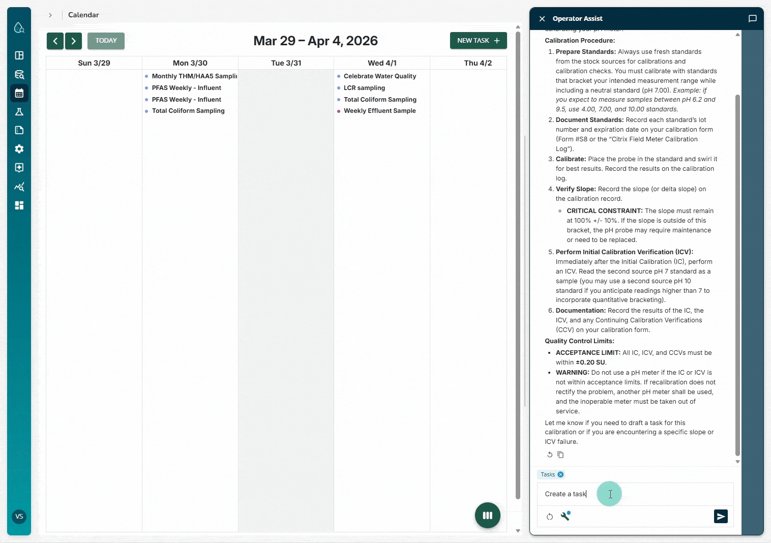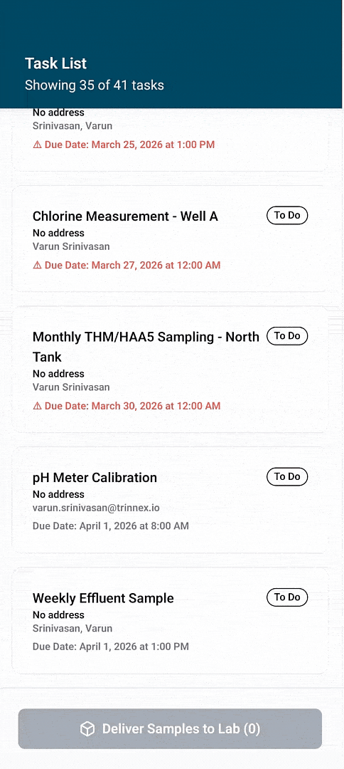Replace whiteboards and manual tracking. Digitally oversee monitoring plans, assign tasks, and track physical samples to ensure 100% adherence to complex schedules.