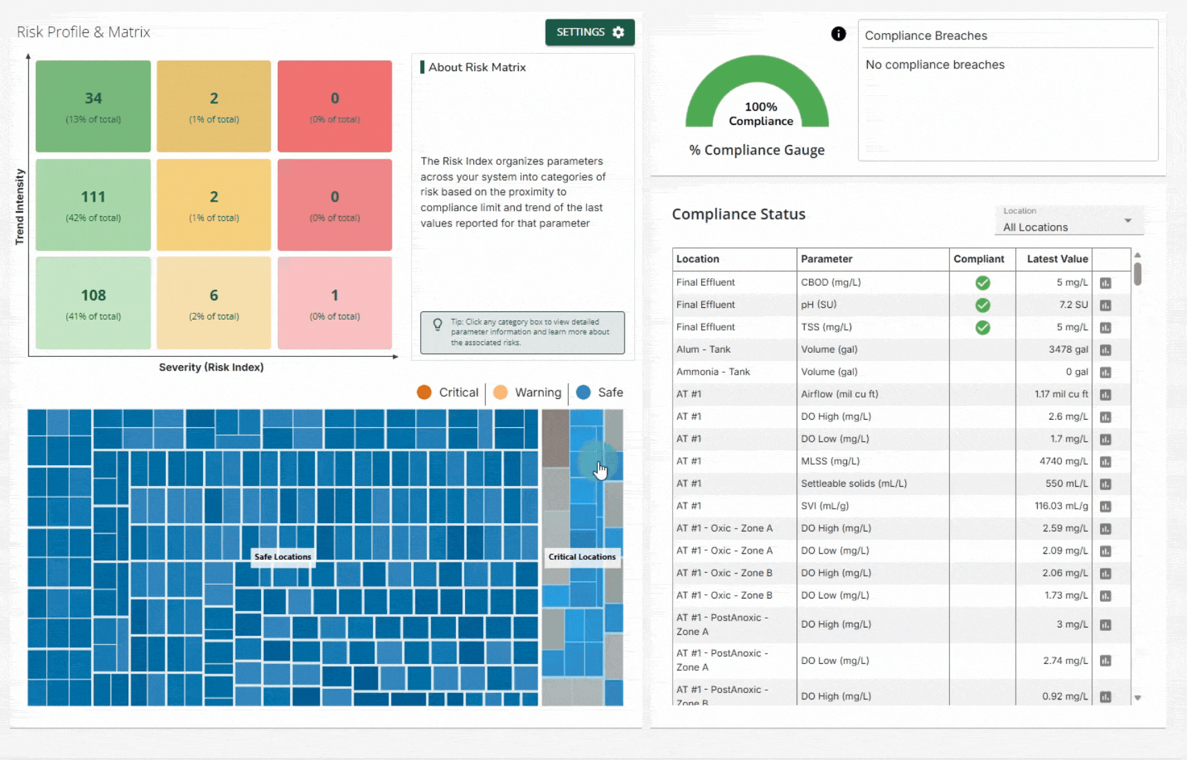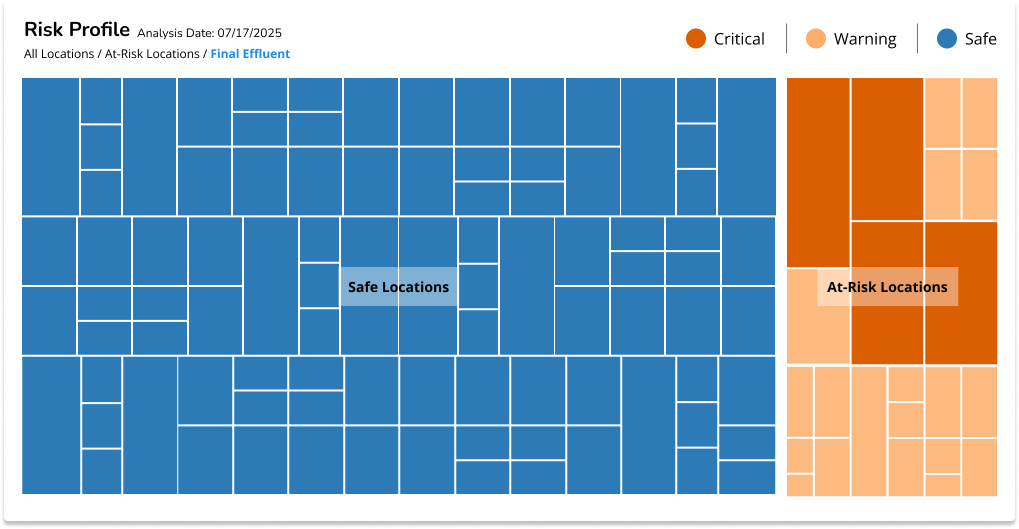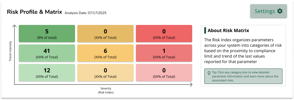 waterCAST WQ’s intelligent Risk Matrix acts as an early warning system by evaluating the severity of current data and the intensity of its trend. It automatically identifies "sleeper threats"—issues that look minor today but are escalating rapidly toward non-compliance.